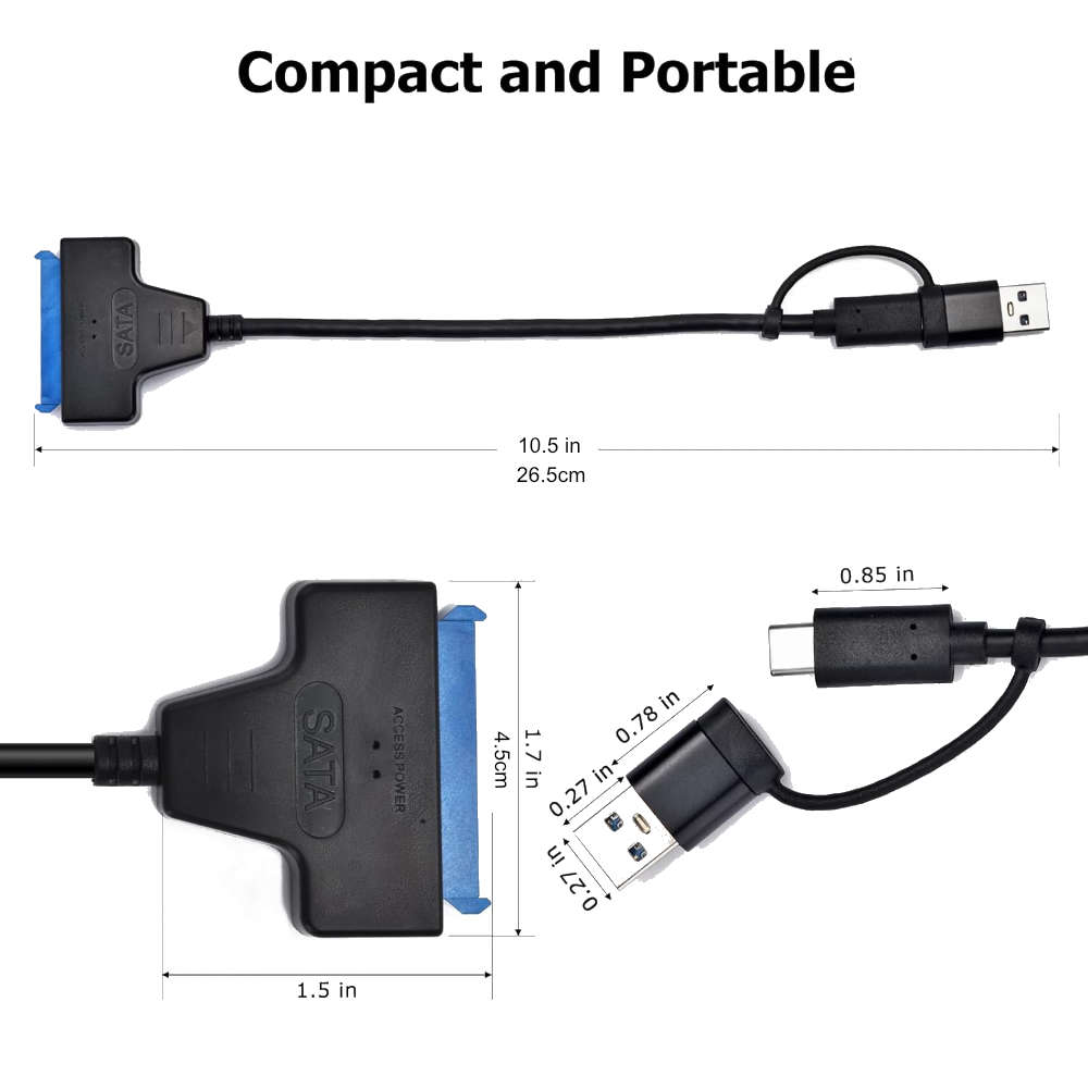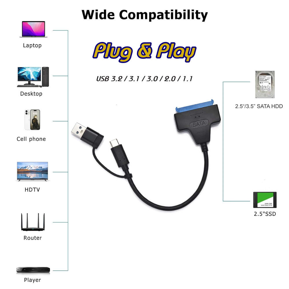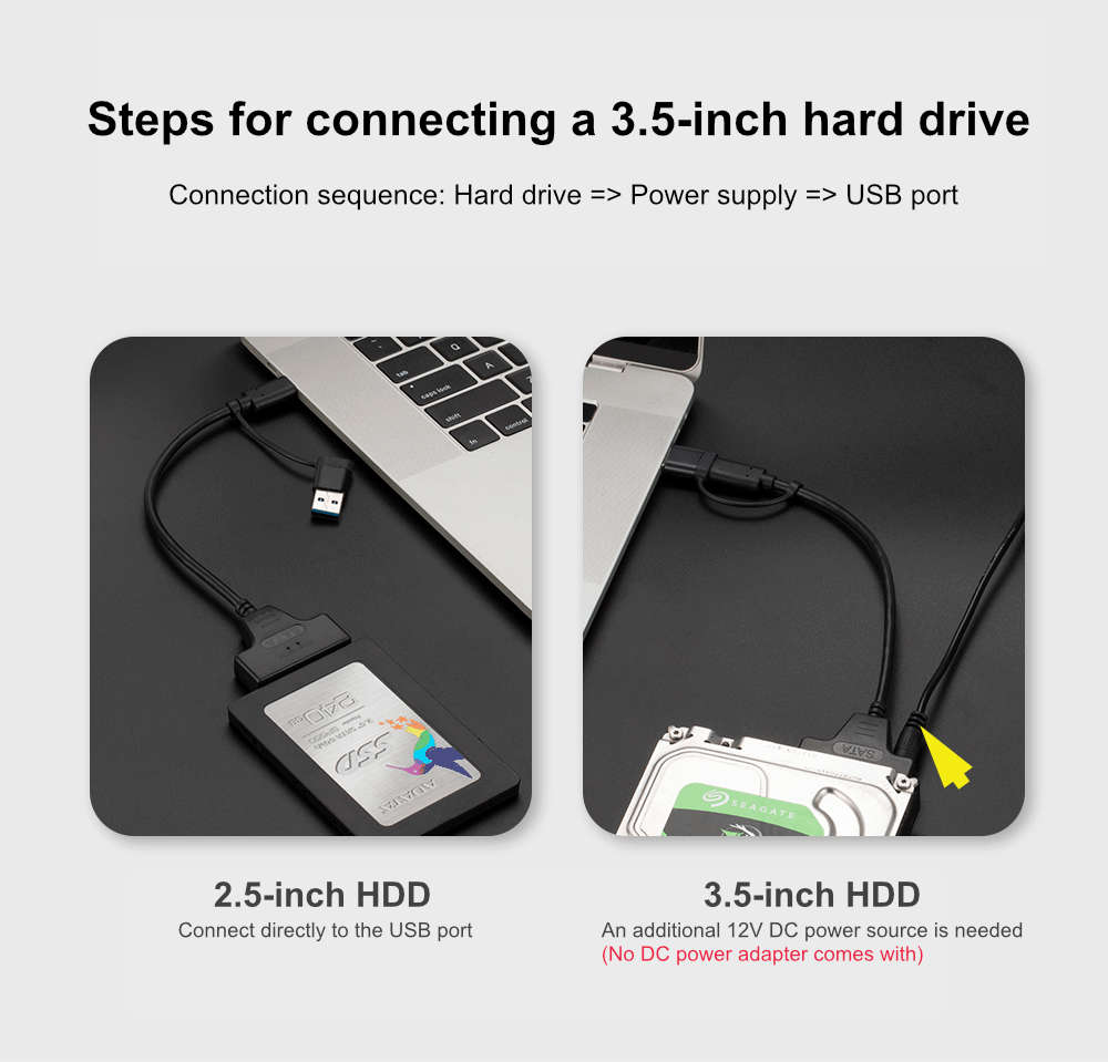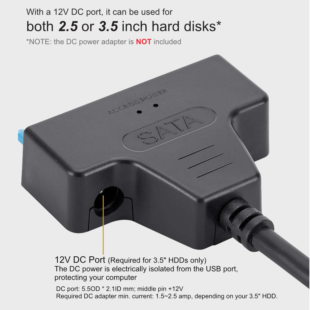 SATA Hard Drive to USB 3.0 (Type C or A) Adapter with DC Port