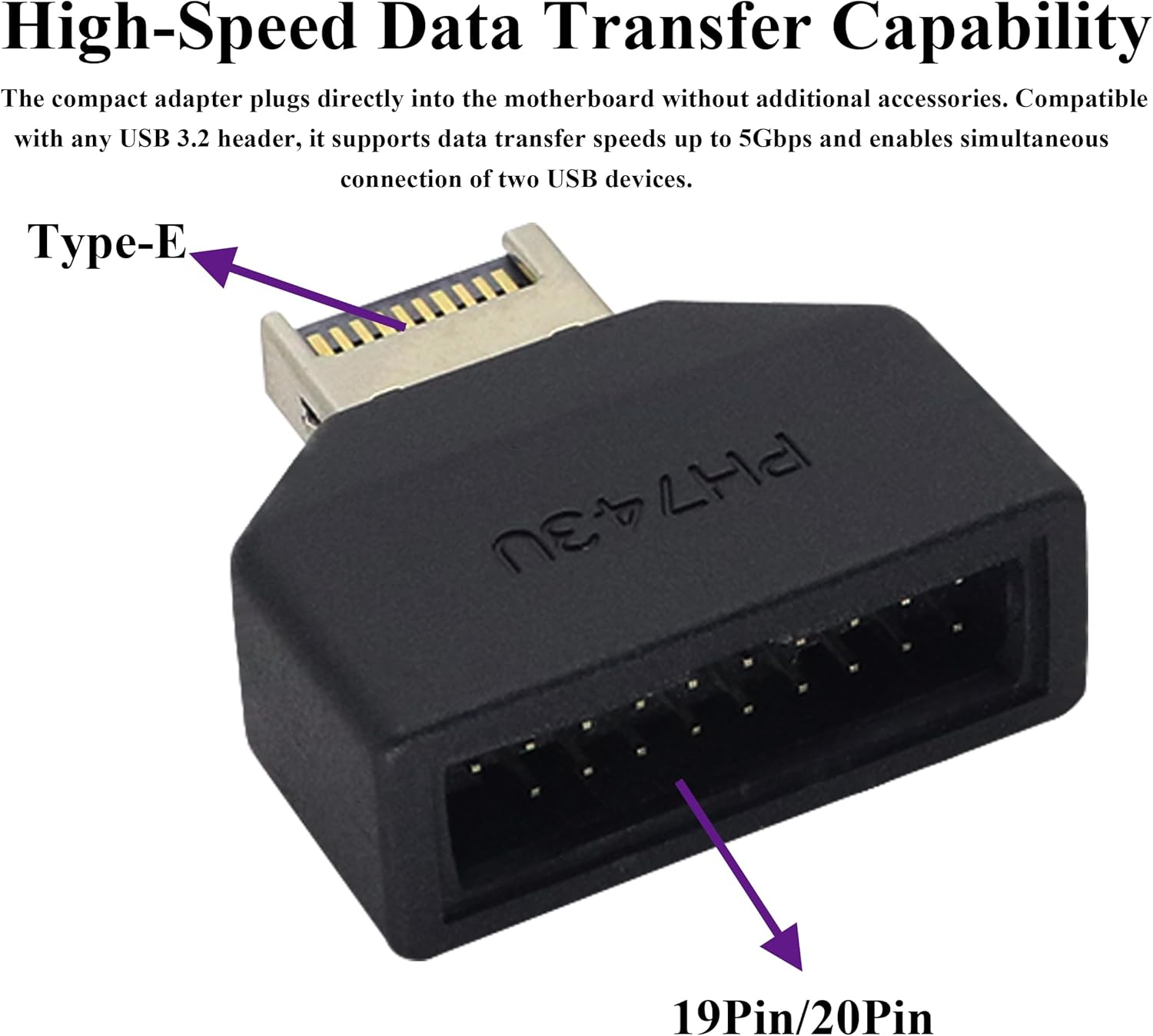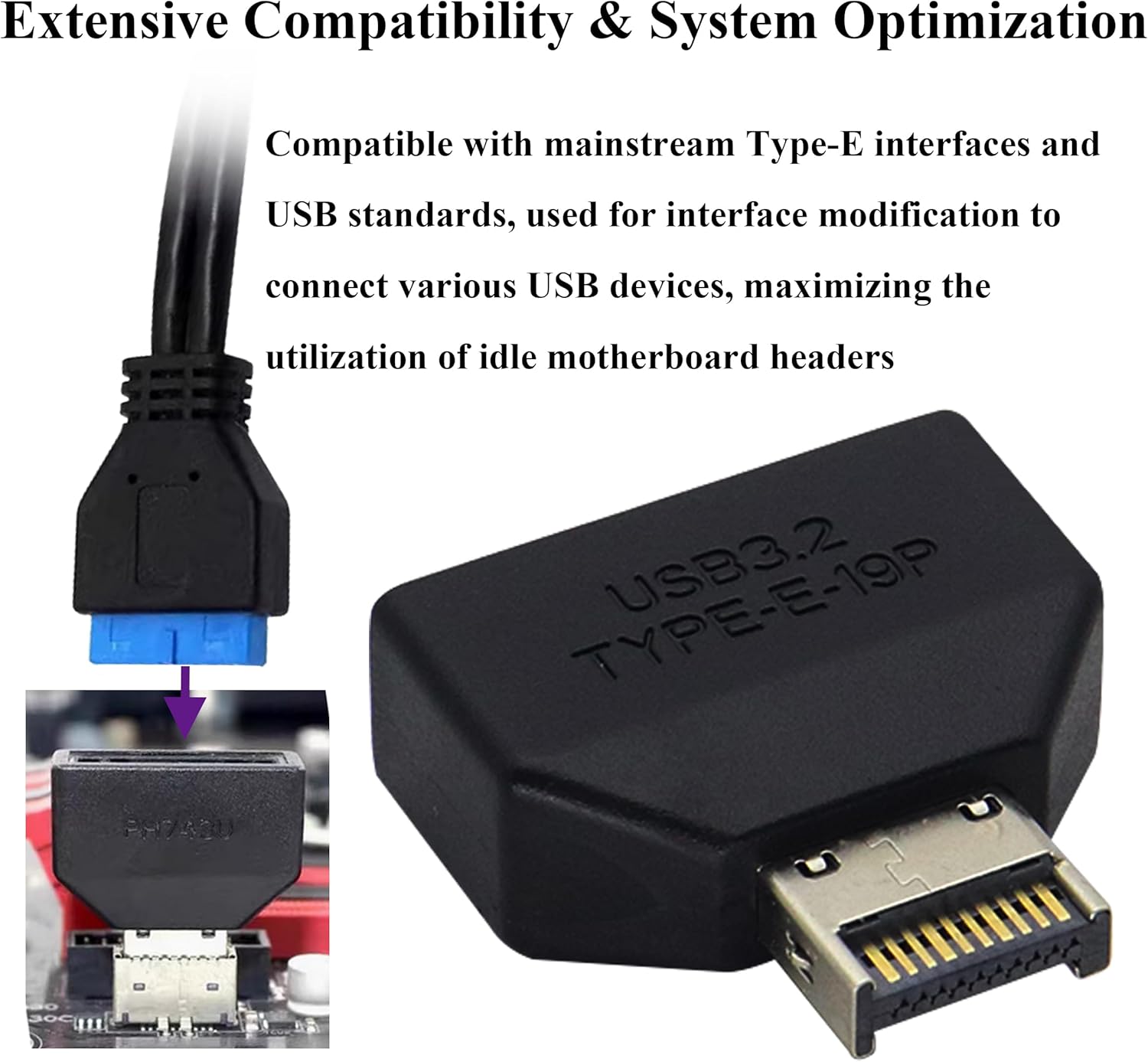 Converts Type-E port on the motherboard into 19/20-pin USB interfaces