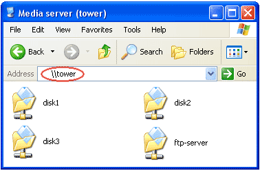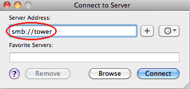 Mac® User: from Find -> Go -> Connect to Server. type in: smb://tower. Then click on