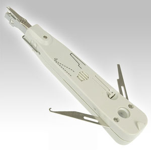 For terminating into RJ11, RJ45, and Cat-5e patch panels with IDC blocks, and for generally providing accurate connections into sockets, patch panels or outlets. The tool will terminate and cut wires in one quick action.