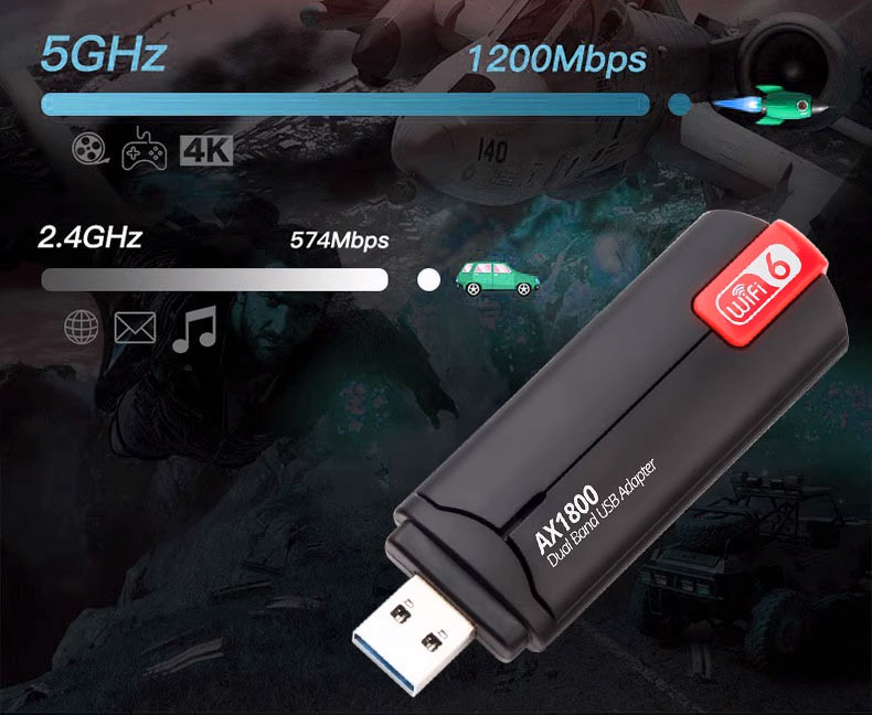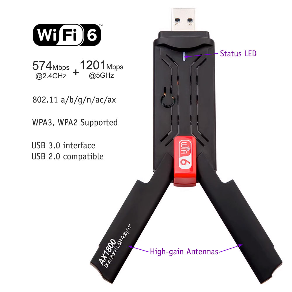 WiFi 6 Dual Band AX-1800M USB Dongle for Linux / Windows®
