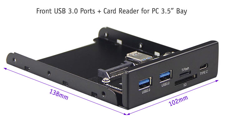 For PC case with 3.5" Floppy bay, port: 2* USB A | USB C | SD | micro SD. USB 3.0 5Gb/s speed