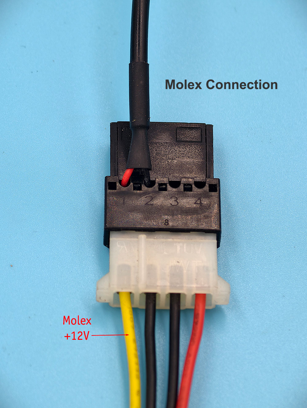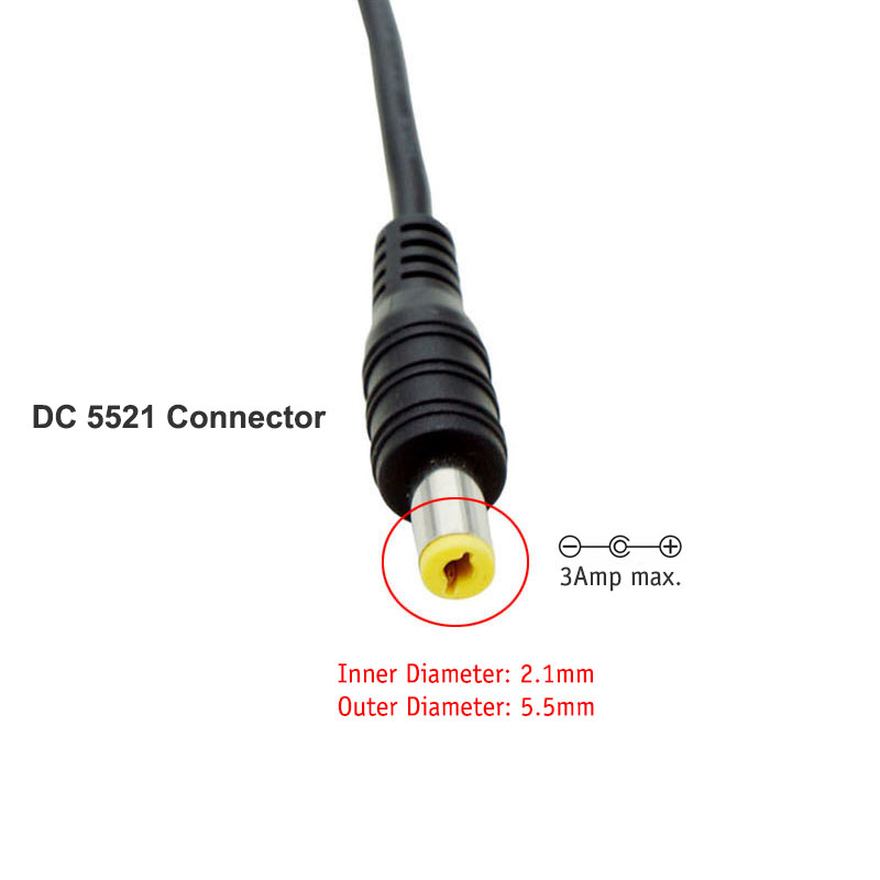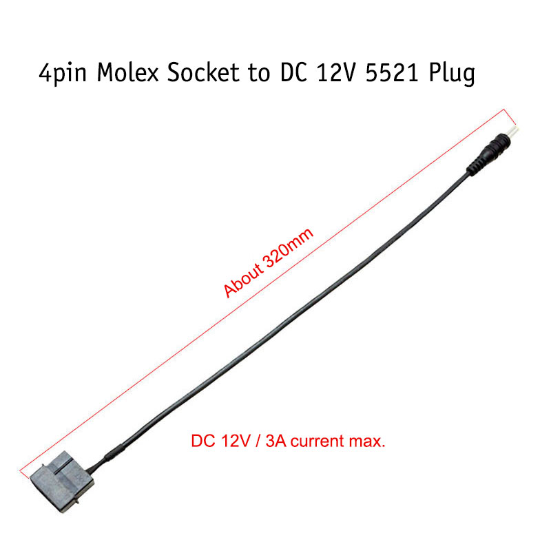 12V DC output via a Molex connector from your desktop PC PSU (3amp max)